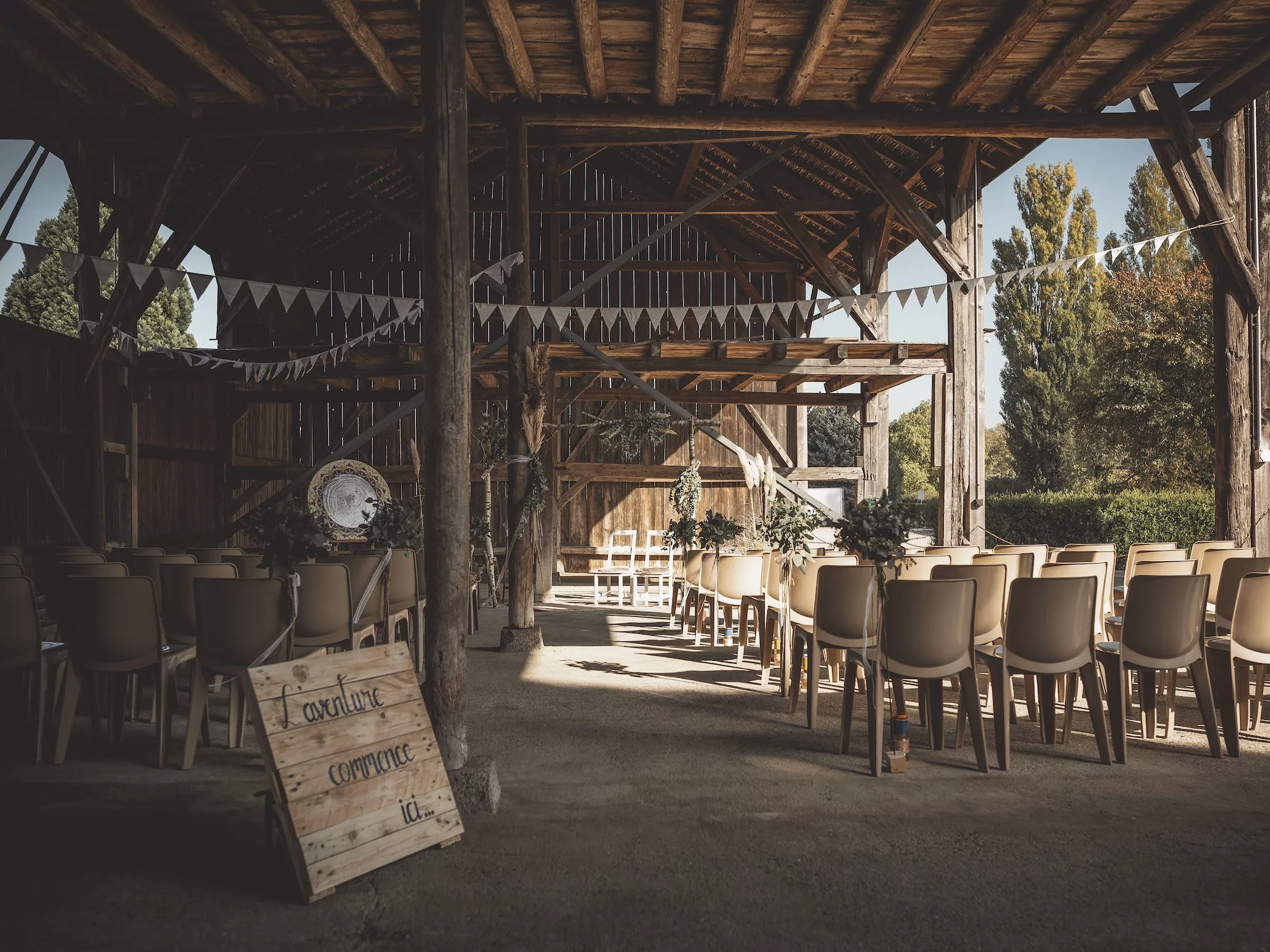 Célébrez votre union dans l’authenticité et le charme intemporel de notre grange historique. Son ambiance chaleureuse crée un cadre exceptionnel pour un mariage unique et élégant. Une expérience inoubliable, mêlant tradition et raffinement.