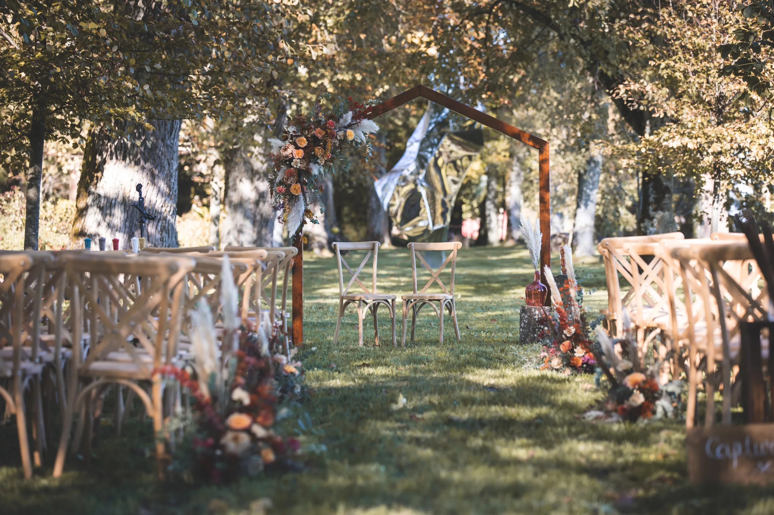 Offrez-vous un écrin unique pour votre union et ne faites qu’un avec nature. La pureté et l’immense énergie des arbres centenaires, l’atmosphère paisible et les rayons de lumière filtrant à travers les branches créent un cadre féérique, parfait pour une cérémonie inoubliable.