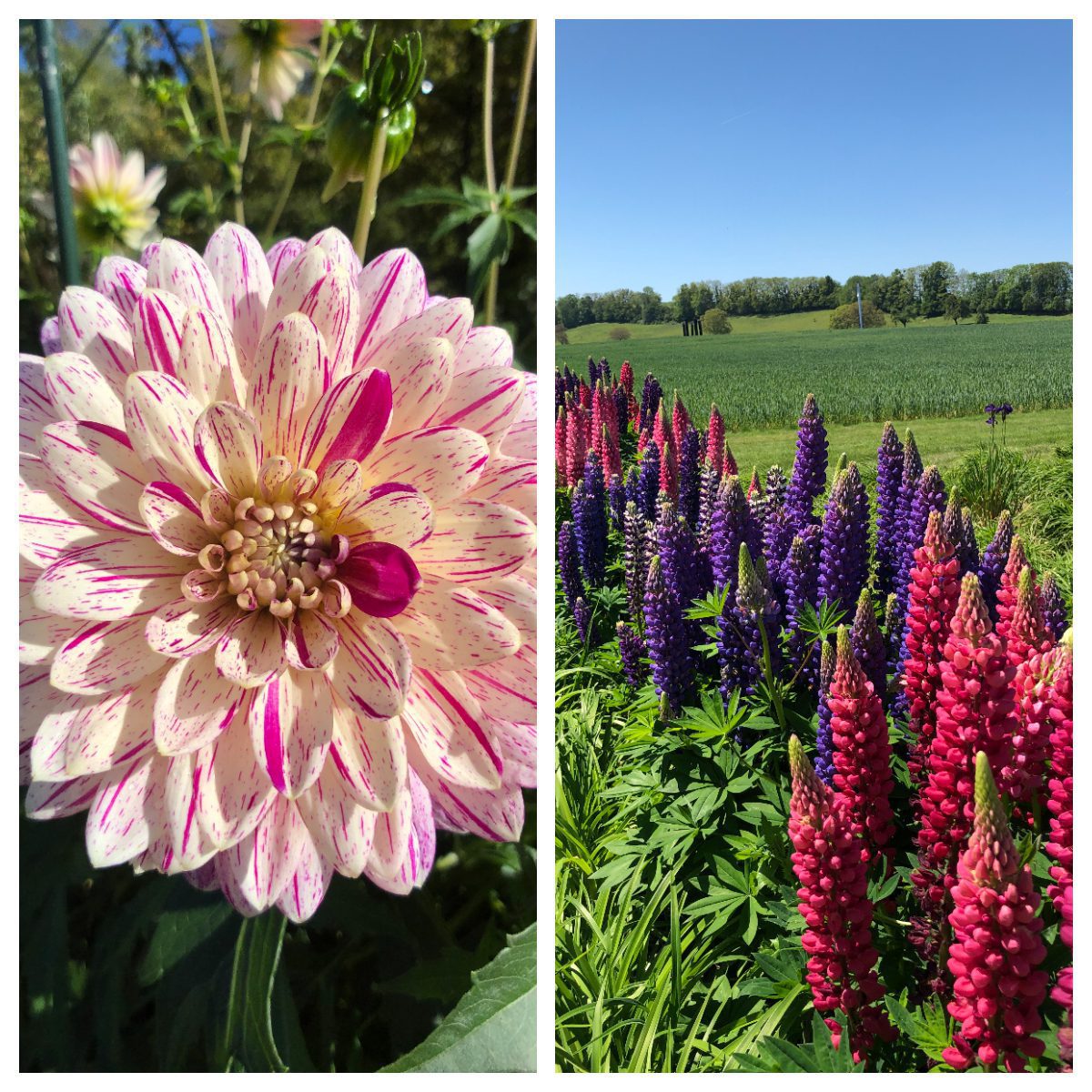 Nous vous avons parlé terroir, feu de cheminée, couleurs douces et teintes écarlates du soleil d’octobre, mais voici quelques surprises florales à découvrir dans nos jardins, qui sauront également sublimer vos photos! Dahlias multicolores, lupins, iris remontants, cyclamens et bien d’autres pour le simple bonheur de vos yeux…