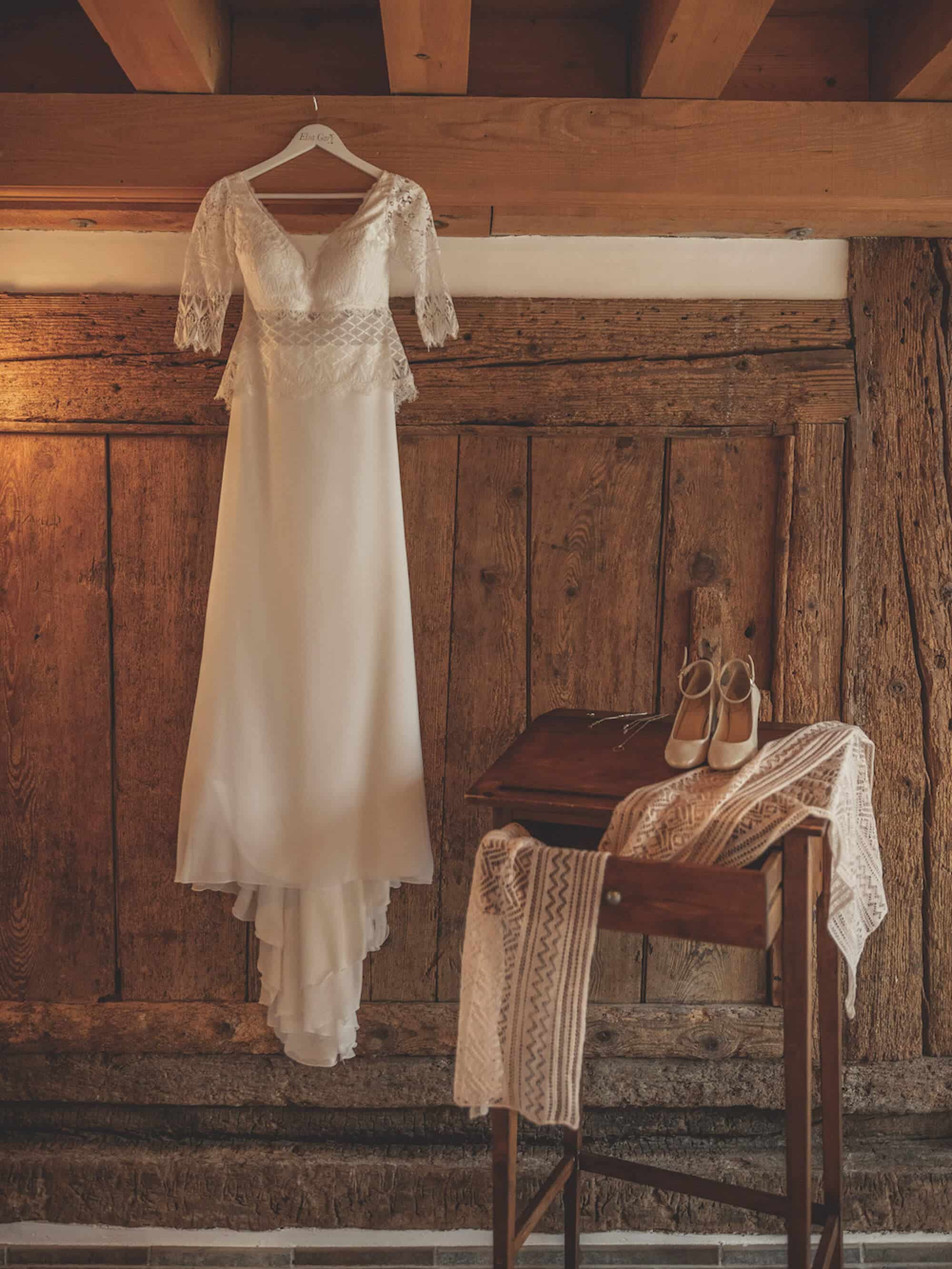 A dress full of poetry that plays with the smallest breeze, in constant movement, hair in the wind or in a messy bun, locks, lace, a wreath of flowers, the list is long as the style is declined in different ways. The folk wedding is white, beige, plays with pastel and soft tones, cream … we talk about softness here again.