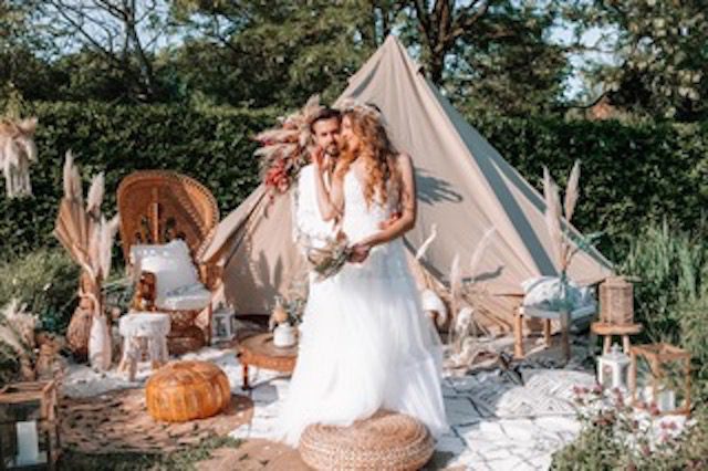 The authenticity of our wooden Dorianna room is perfect for a boho-chic wedding, just as if they were made for … it takes very little to bring out all their character … a few touches are enough to make this place a parenthesis out of time, just for you the time of one evening. Garlands, laurel, eucalyptus, and other greenery for a rural and natural spirit, and why not, some natural stones, granite, agates or geodes to play with the light and immerse yourself in an indie universe? Because the magic of boho is also the sweet mix of cultures and tastes.