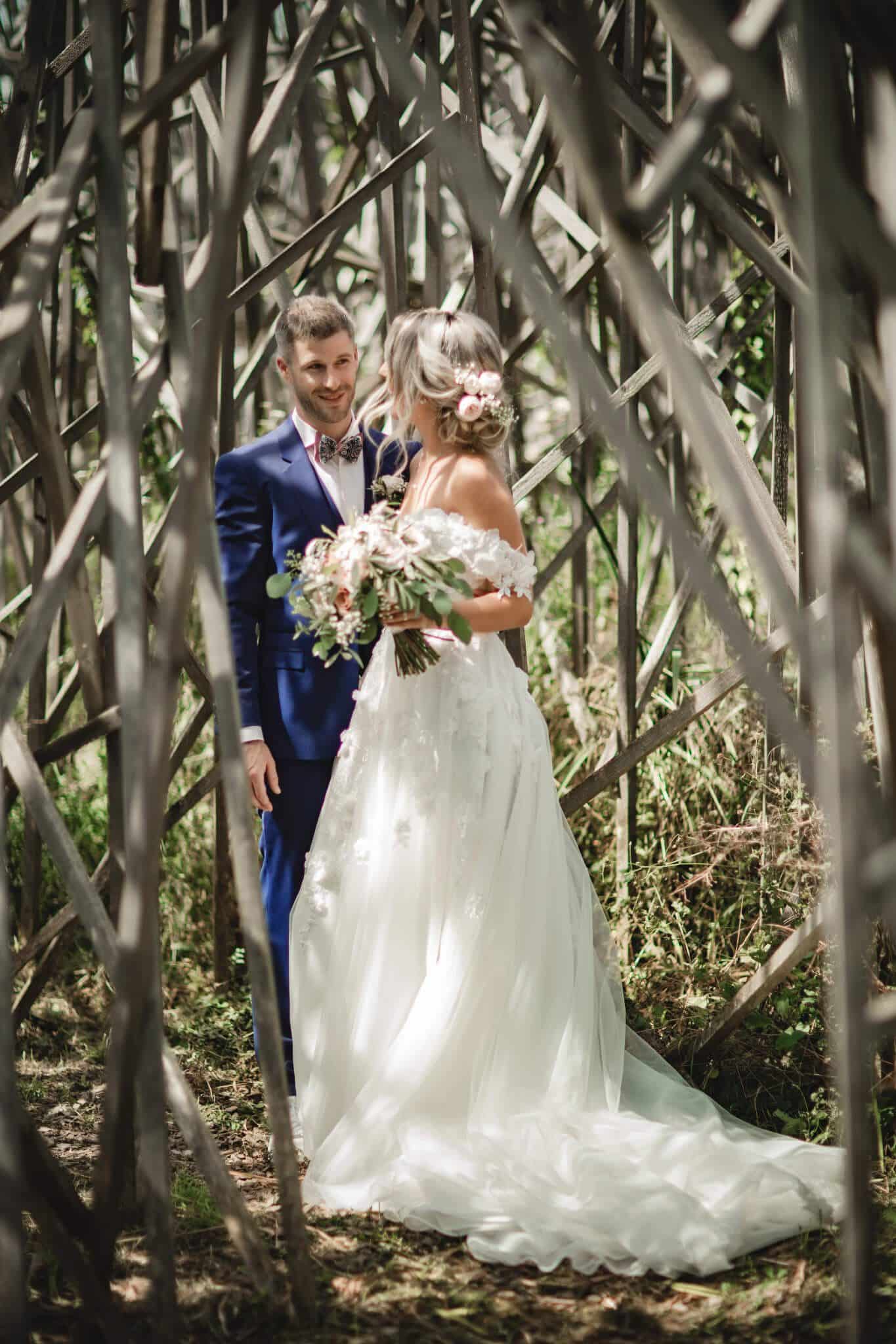The most important thing is to accessorize your dream dress with accessories that you like and that go perfectly with it. We like to dress up the hairstyle with a pretty comb, jewelry or natural flowers or even dried/stabilized flowers (ultra trendy). Don’t hesitate to include your floral designer in your choices! The bouquet should match the mood of your wedding; we like to favor seasonal flowers.