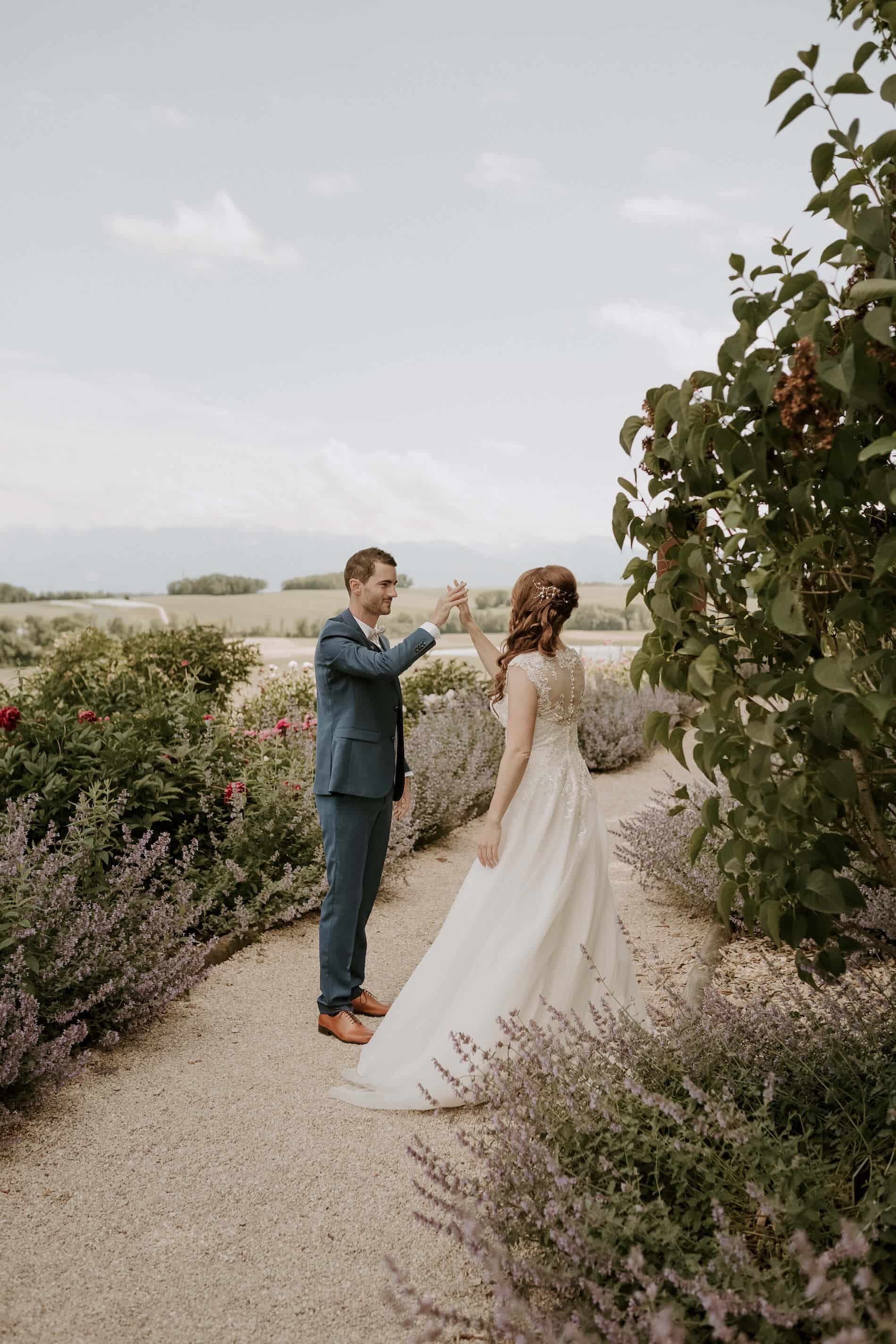 Laetitia and Vincent were married at Portes des Iris on Saturday, June 15, 2019 . The groom arrived mid-morning to install the last decorations and prepare the reception room. The big question hovering over the preparations that day was: “Can we have the ceremony on the Terrace or is it wiser to install it in Athena room?”. We were on the phone every half hour with Cointrin to get a live update on the rainfall and finally decided, at around 2pm, to set up the ceremony outside. It was barely an hour later that the first guests were welcomed with refreshments on the Iris Terrace, warmed by a few rays of shy sunshine. The day was launched and the following hours were touching with sincerity and sharing. Discover the testimony and the day of union of our two lovebirds!
