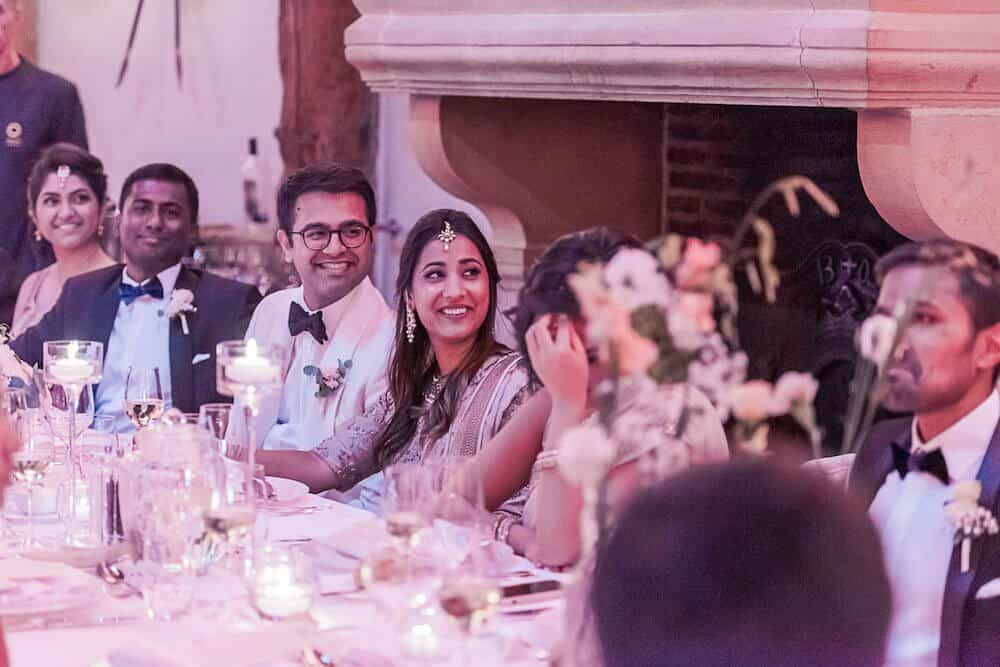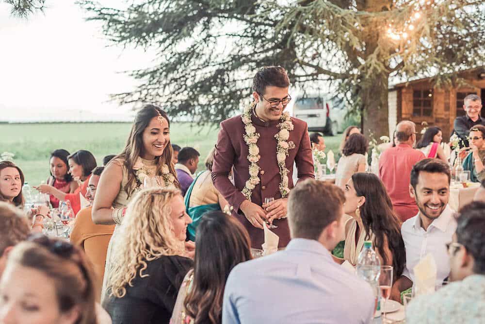 « Nous sommes une famille indienne. Notre fils s’était marié à Sonoma, en Californie, l’année dernière. L’expérience de l’organisation du mariage était donc encore très fraîche dans nos esprits. Tout comme pour notre fille, nous voulions représenter tous les aspects de notre identité au cours du mariage. Et retracer notre voyage et nos foyers à travers le monde à différentes époques grâce à la nourriture que nous avons également servie. Nous avons tout d’abord organisé une soirée de bienvenue chez nous pour tous nos invités internationaux, suivie d’une soirée indienne avec de la nourriture, de la musique et des danses incroyables dans un magnifique vignoble. La dernière soirée a eu lieu aux Portes des Iris. Tout s’est déroulé à la perfection, chaque lieu a été propice à un mariage mémorable ».